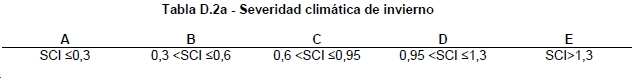 3 La severidad climática combina los grados-día y la radiación solar de la localidad, de forma que se puede demostrar que cuando dos localidades tienen la misma severidad climática de invierno (SCI) la demanda energética de calefacción de un mismo edificio situado en ambas localidades es sensiblemente igual. Lo mismo es aplicable para la severidad climática de verano (SCV).